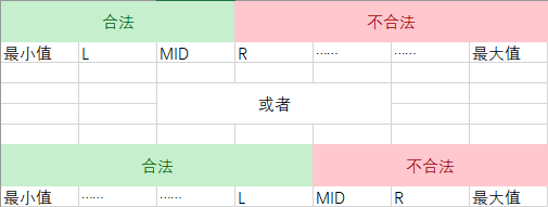- 可行解对于区间满足一定的单调性。换言之,如果 \(x\) 是符合条件的,那么有 \(x + 1\) 或者 \(x - 1\) 也符合条件。(这样下来就满足了上面提到的单调性)