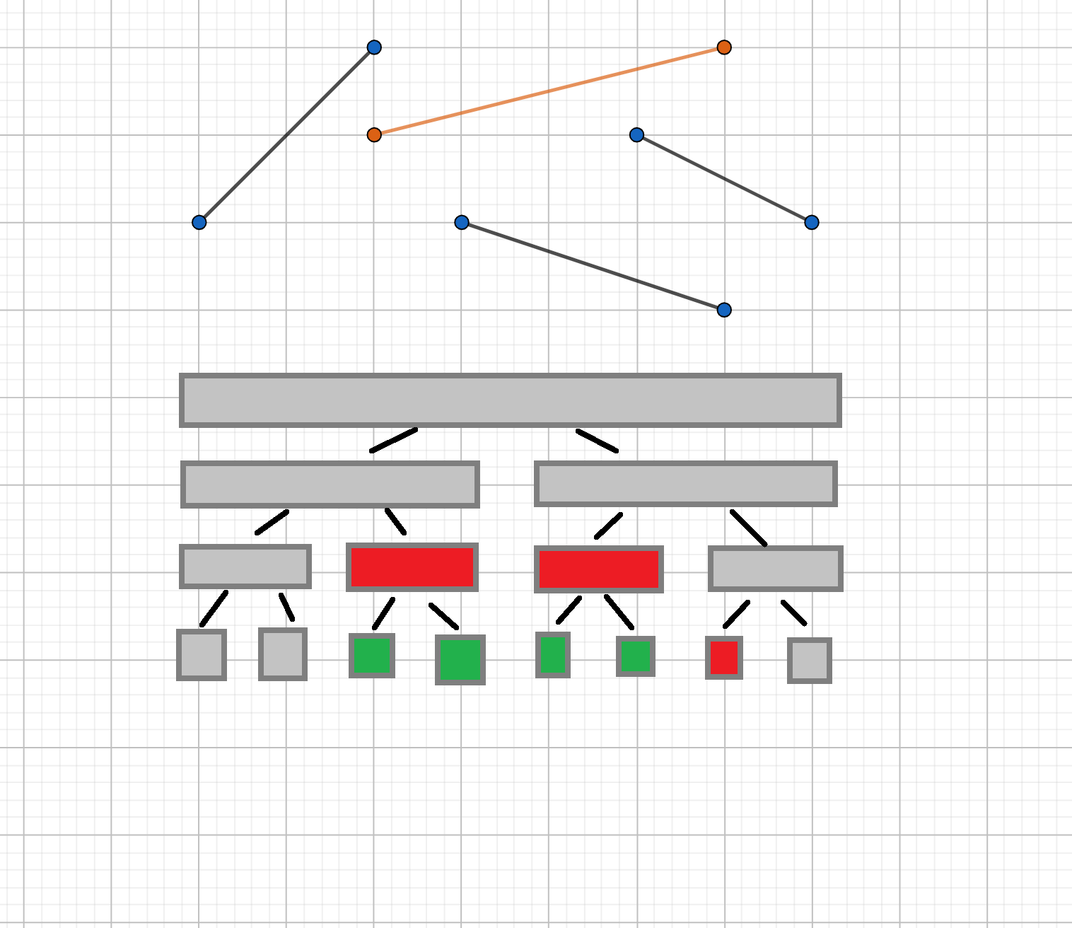 根据上面的描述,查询过程的时间复杂度显然为 \(O(\log n)\),而插入过程中,我们需要将原线段拆分到 \(O(\log n)\) 个区间中,对于每个区间,我们又需要花费 \(O(\log n)\) 的时间递归下传,从而插入过程的时间复杂度为 \(O(\log^2 n)\)。